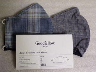 Adult Cloth Masks, Reusable, Machine Washable, Reversible (2 pack) Blue Plaid, OSFM (CR00488-WTA)